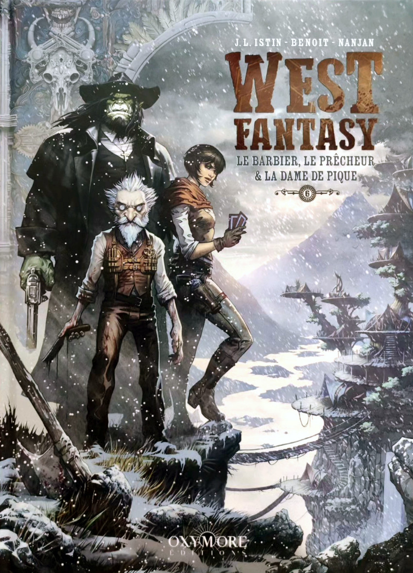 L'alliance proposée dans cet album, « Le barbier, le prêcheur & la dame de pique » est aussi incongrue qu'efficace : un barbier mourant avec sa liste de criminels à éliminer de la surface de la Terre, un prêcheur orc capable de réciter les Écritures tout en fracassant des crânes, et une joueuse de poker dont les talents aux cartes rivalisent avec sa maîtrise des armes blanches. Ces trois personnalités traversent les espaces dangereux de West Fantasy et vont croiser des totems ancestraux, rentrer dans des saloons crasseux et découvrir des cultes mystérieux qui prospèrent dans l'ombre des montagnes rocheuses. L'Ouest est un véritable enfer où la survie exige de devenir plus féroce que ses adversaires.