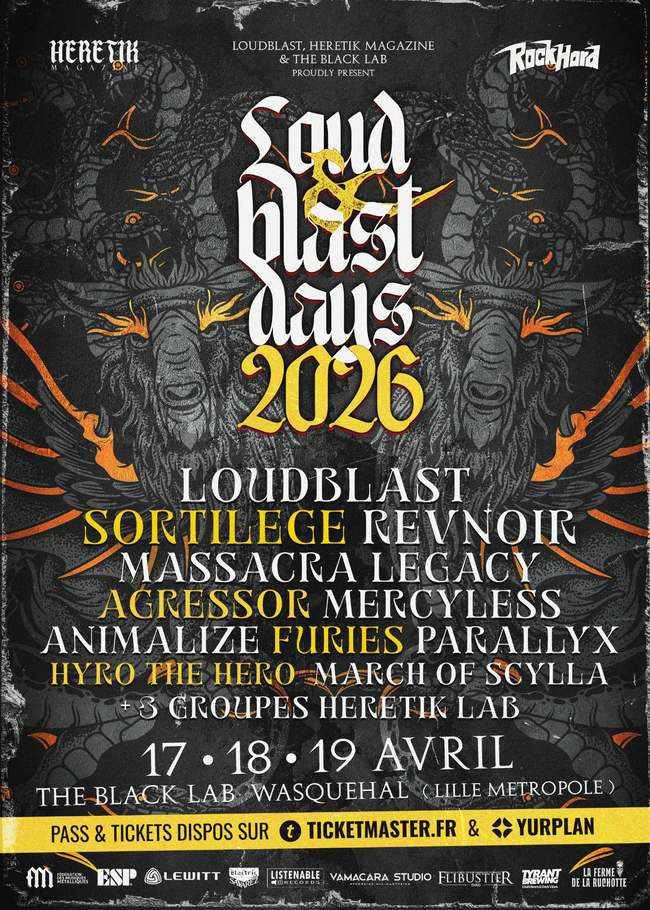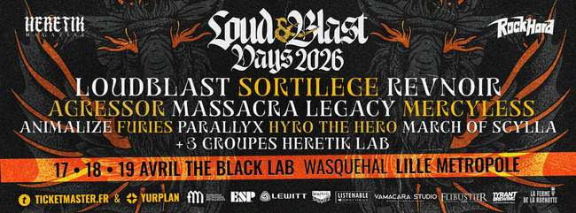 3 jours, 3 thématiques ! Pour cette première édition, l’équipe de Stéphane Buriez a mis les petits plats dans les grands et propose 3 jours de festivités sous le patronyme Loud&Blast Days ! Convoquant pionniers et nouveaux fleurons de la scène, la programmation se décline en 3 soirées thématiques aux noms évocateurs : Brutal Revenge, Steel Of The Night et New World Chaos... Au total, 11 groupes viendront enflammer la scène auxquels s’ajouteront 3 groupes “espoirs“, repérés par le Tremplin HERETIK LAB (et dont les noms seront connus fin mars).