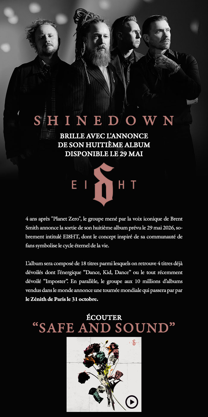 SHINEDOWN annonce la sortie de son huitième album + un concert au Zénith de Paris !